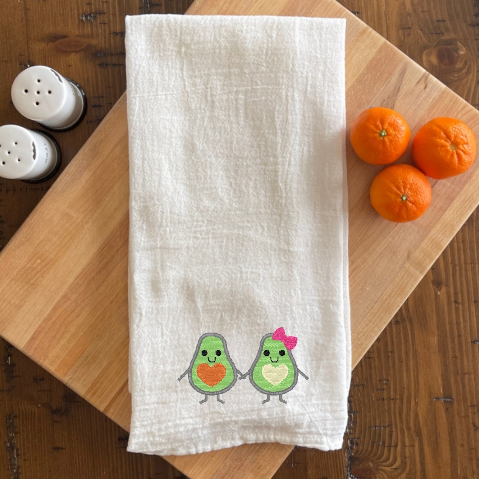 Avocado Lovers - Embroidered White Tea Towel