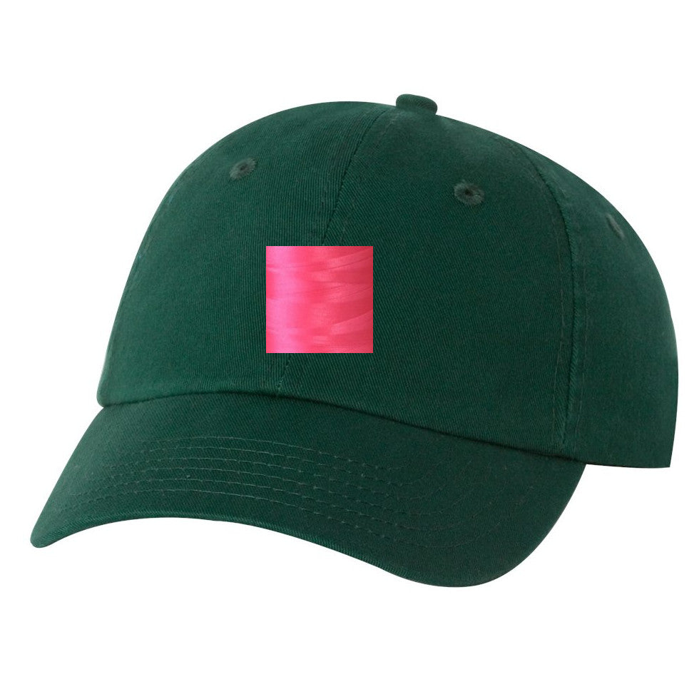 We love Dad. Dad loves these hats. So, here we are with the "Dad Hat" classic full-coverage baseball cap. Buckle slide in the back, cotton hat, stitched on our machines in our Home studio. This is an answer to our customers who love a lower profile hat (shorter in depth), and no mesh on the back. We have put together popular combinations to give you some ideas as to how they will look, when finished.