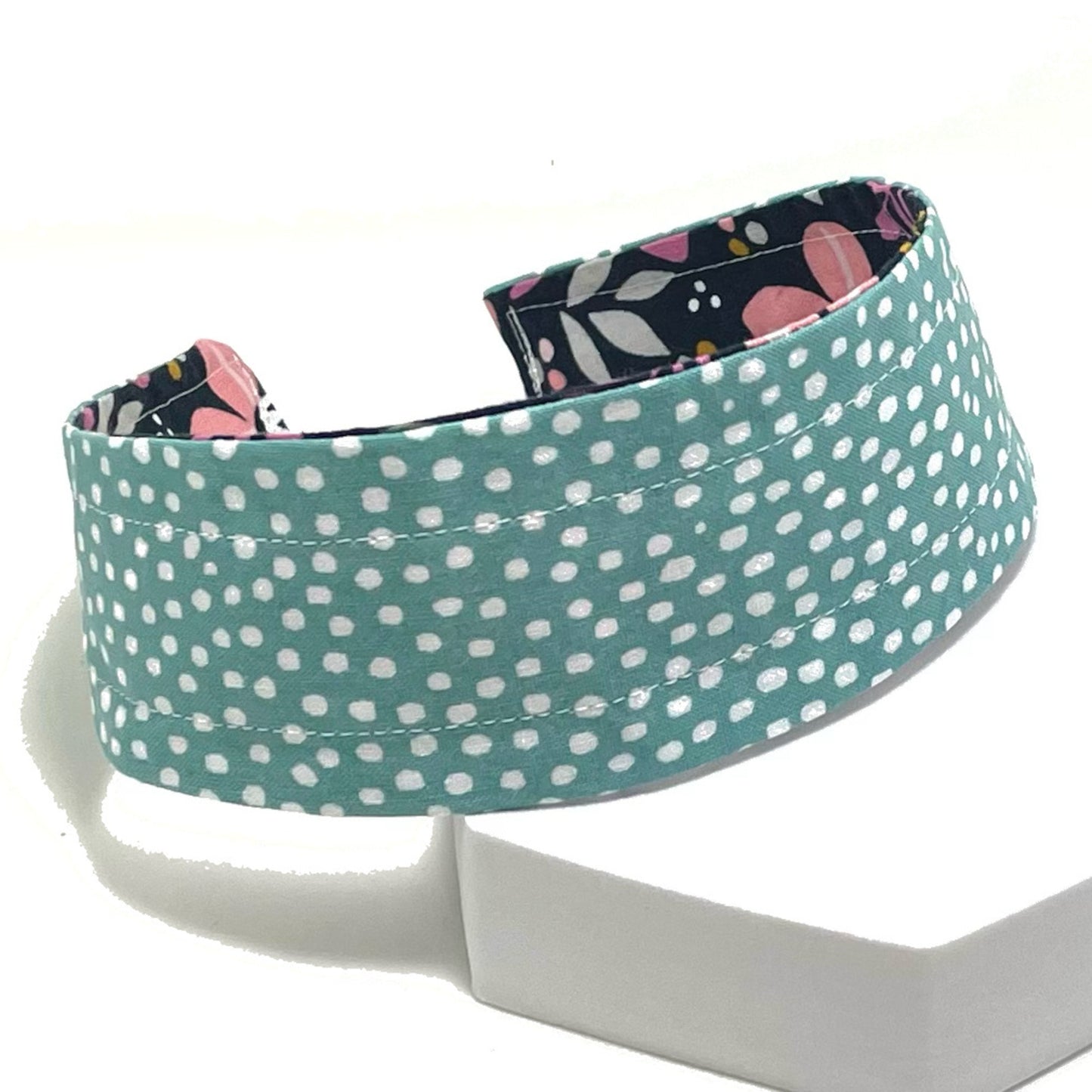 Comfortable Reversible Handmade Fabric Headband - Navy Floral & Aqua Dots