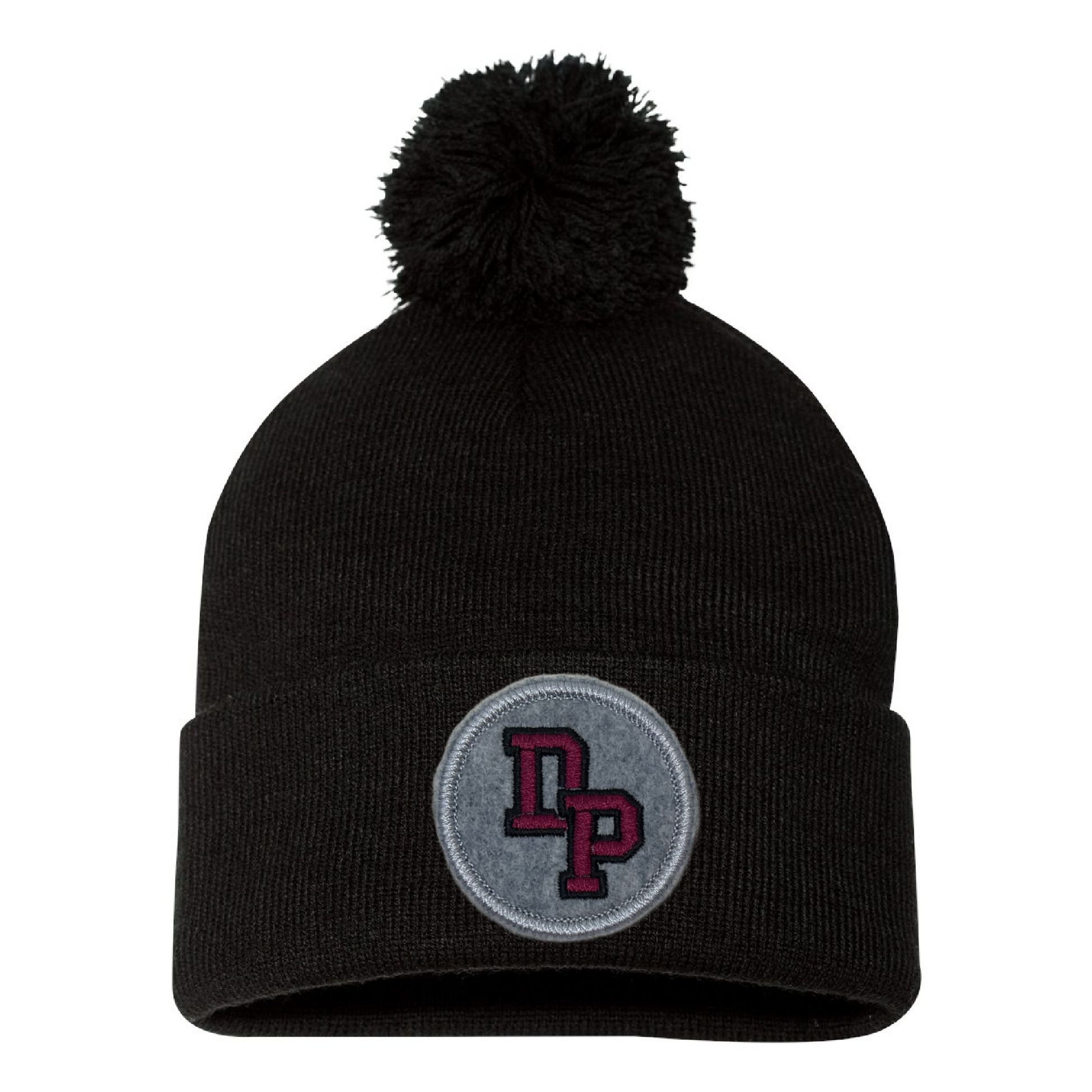 De Pere Pom Pom Beanie - Black with Interlocking DP Gray Patch