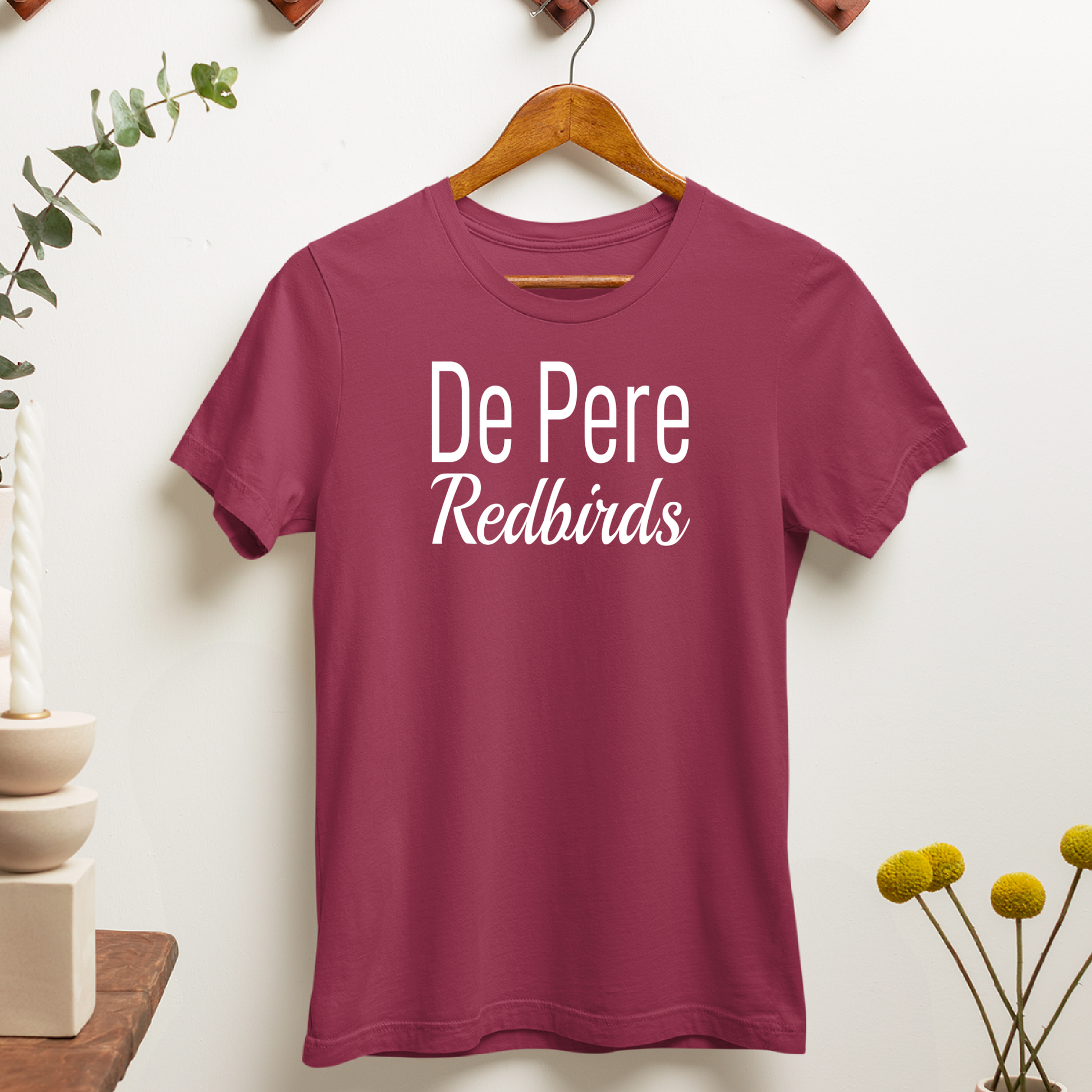 De Pere Redbirds Minimalist Design - Cardinal Red Tee, Crewneck, or Hoodie