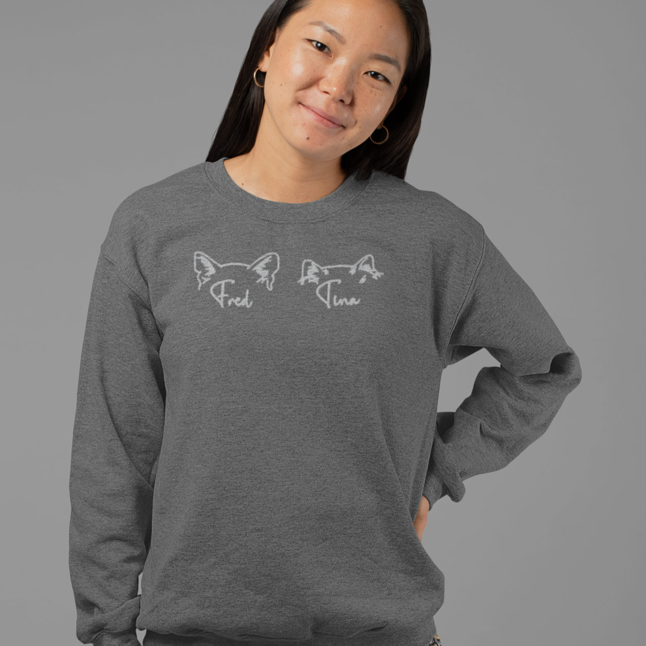 Deep Heather Custom Embroidered Crewneck Sweatshirt - Cat Ears with Name