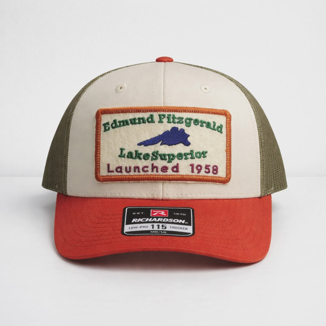 Edmund Fitzgerald Lake Superior Patched Trucker Hat - Cream & Rust