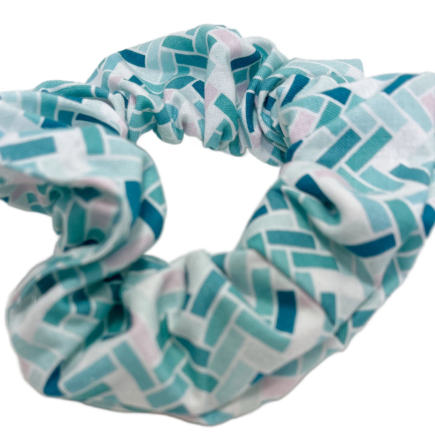 Hair Scrunchie | Blue & Pink Mosaic Print