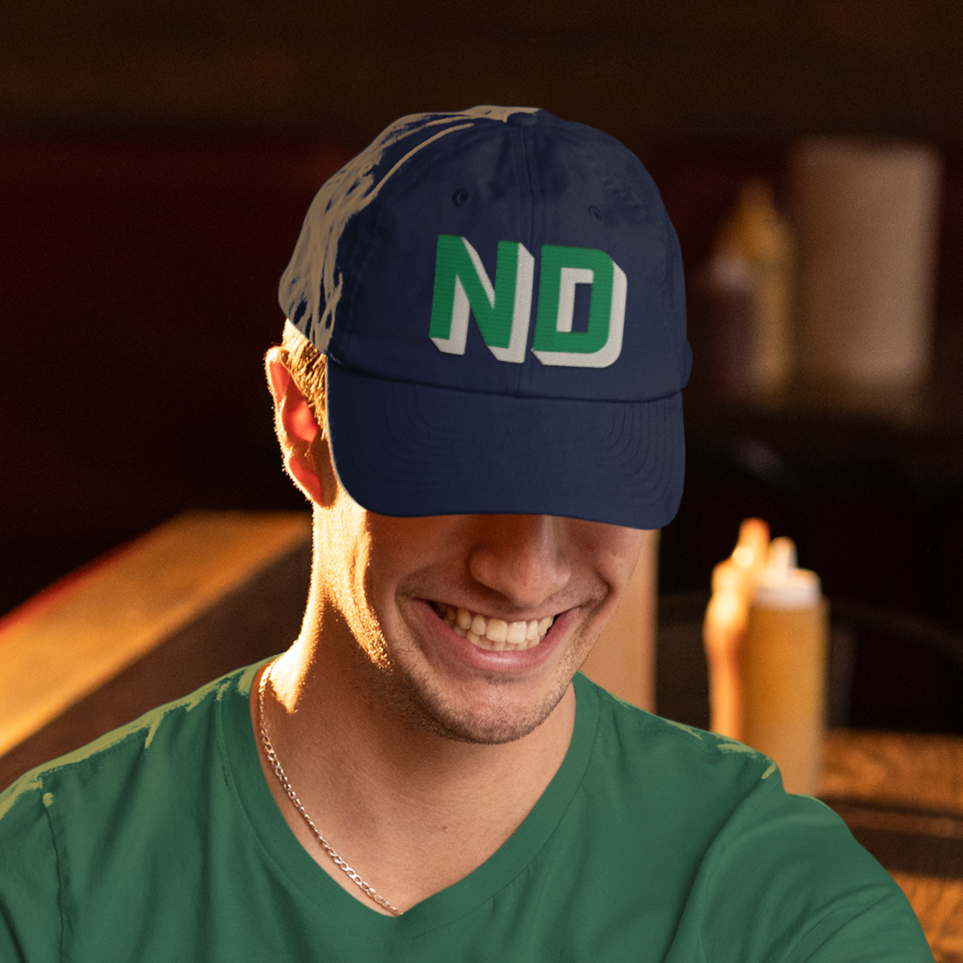 Navy Dad Hat - Green & White Shadow Block Lettering