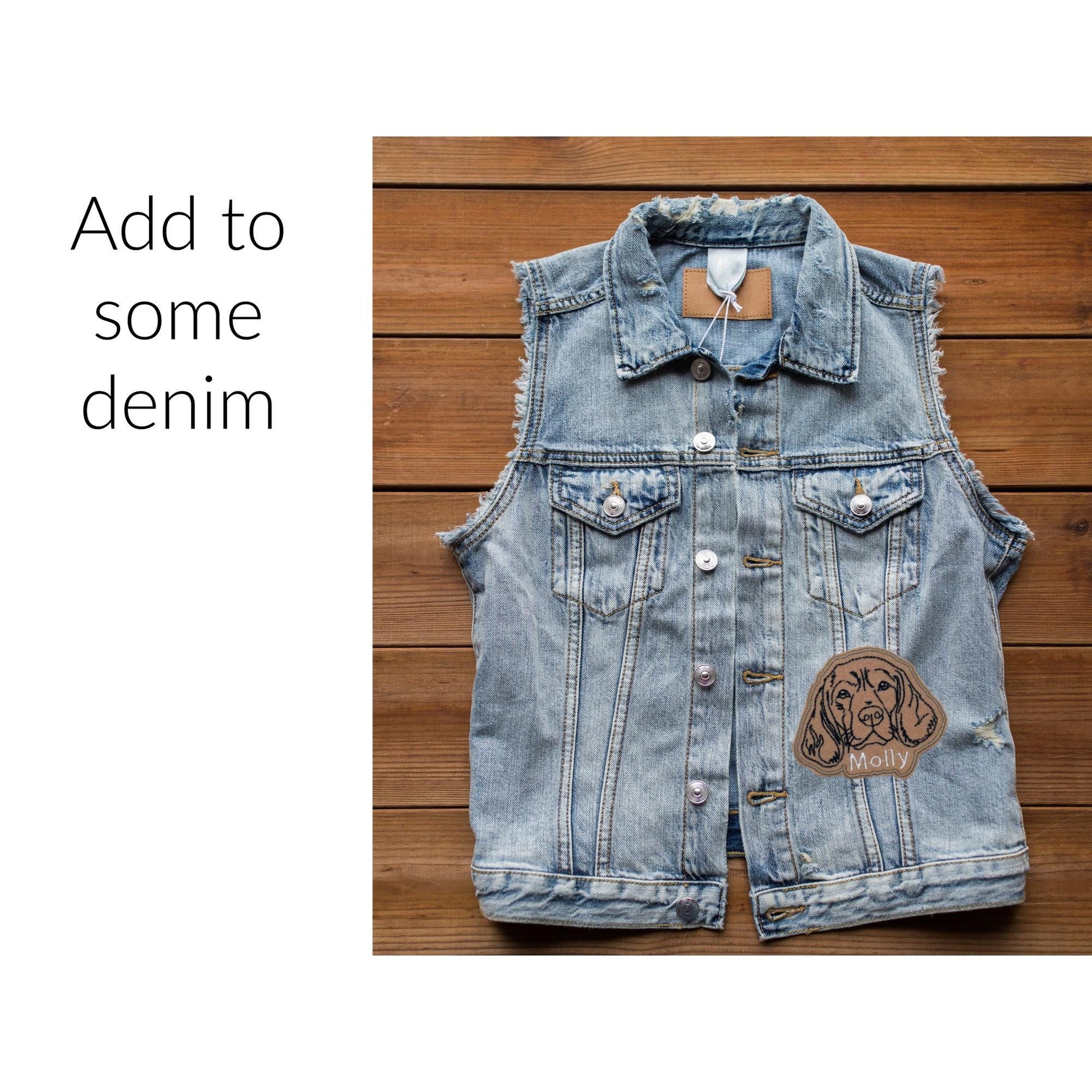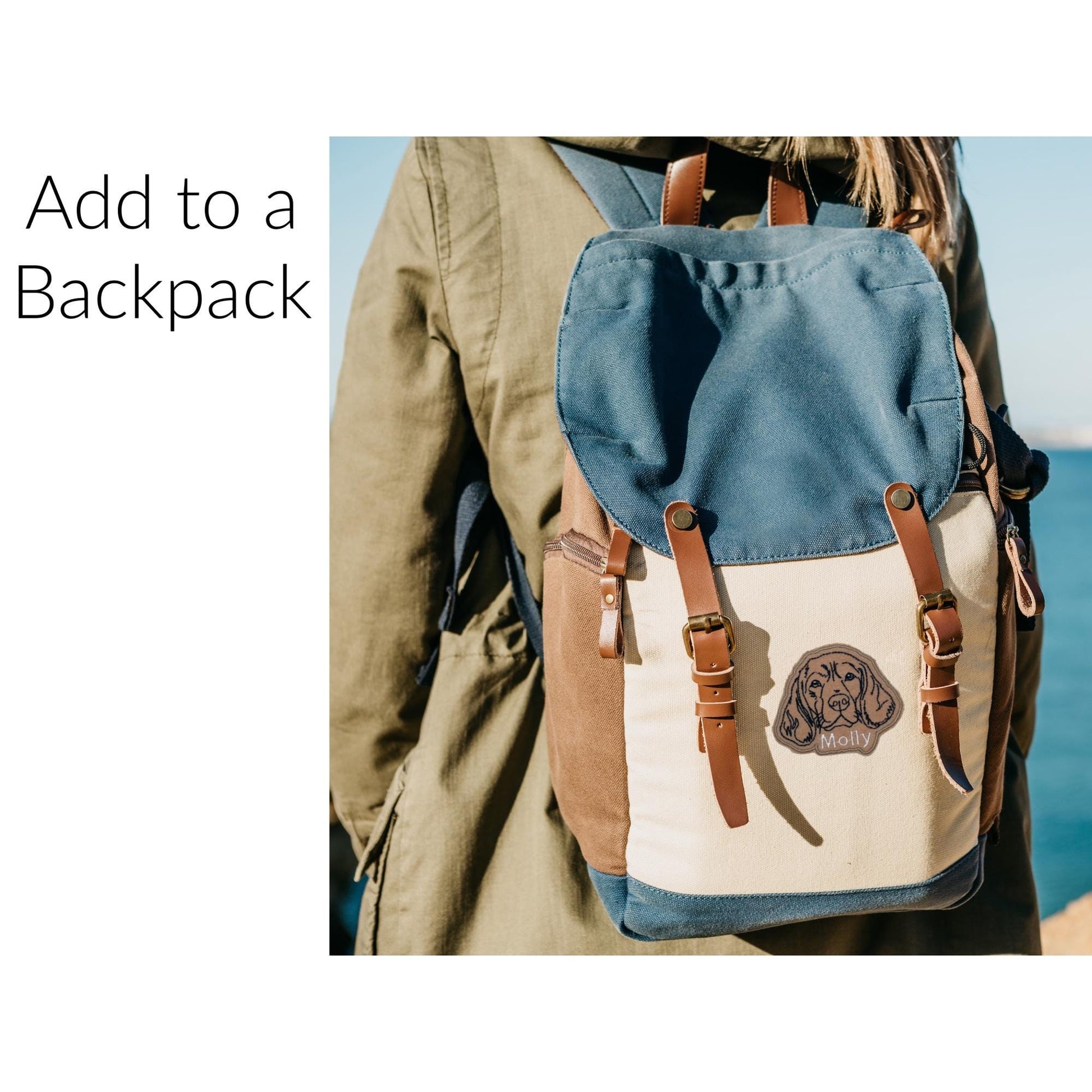 elebrate your favorite pup with a unique embroidered felt patch featuring a hand-sketched style dog face. Each patch is approximately 3" (size varies slightly by breed) and stitched in bold black thread on camel brown felt.