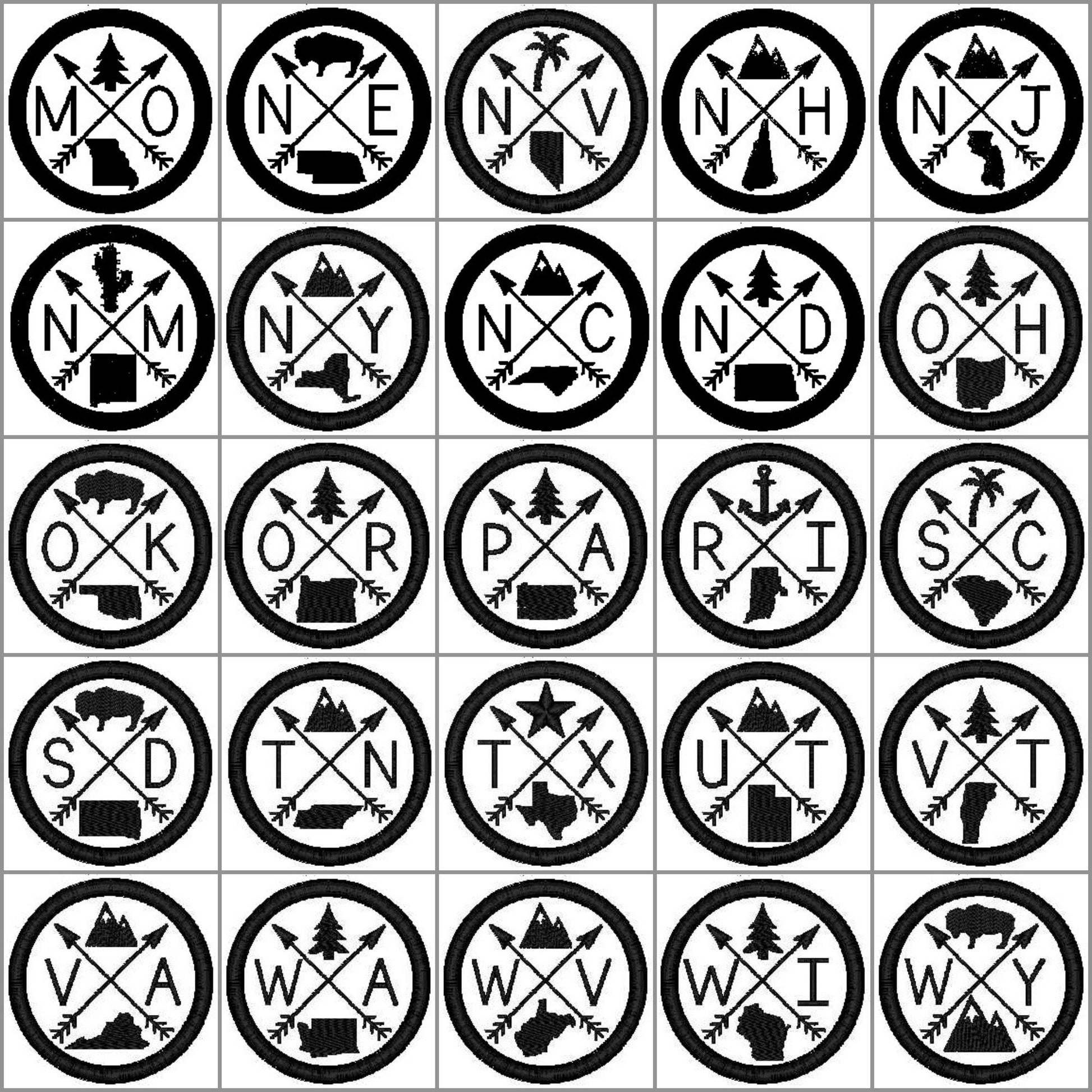 Alabama, Alaska, Arizona, Arkansas, California, Colorado, Connecticut, Delaware, Florida, Georgia, Hawaii, Idaho, Illinois, Indiana, Iowa, Kansas, Kentucky, Louisiana, Maine, Maryland, Massachusetts, Michigan, Minnesota, Mississippi, Missouri, Montana, Nebraska, Nevada, New Hampshire, New Jersey, New Mexico, New York, North Carolina, North Dakota, Ohio, Oklahoma, Oregon, Pennsylvania, Rhode Island, South Carolina, South Dakota, Tennessee, Texas, Utah, Vermont, Virginia, Washington, West Virginia, Wisconsin, WyomingPatches designed for all states. Please see image collages for specific patch for your state. Alabama, Alaska, Arizona, Arkansas, California, Colorado, Connecticut, Delaware, Florida, Georgia, Hawaii, Idaho, Illinois, Indiana, Iowa, Kansas, Kentucky, Louisiana, Maine, Maryland, Massachusetts, Michigan, Minnesota, Mississippi, Missouri, Montana, Nebraska, Nevada, New Hampshire, New Jersey, New Mexico, New York, North Carolina, North Dakota, Ohio, Oklahoma, Oregon, Pennsylvania, Rhode Island, South Carolina, South Dakota, Tennessee, Texas, Utah, Vermont, Virginia, Washington, West Virginia, Wisconsin, Wyoming