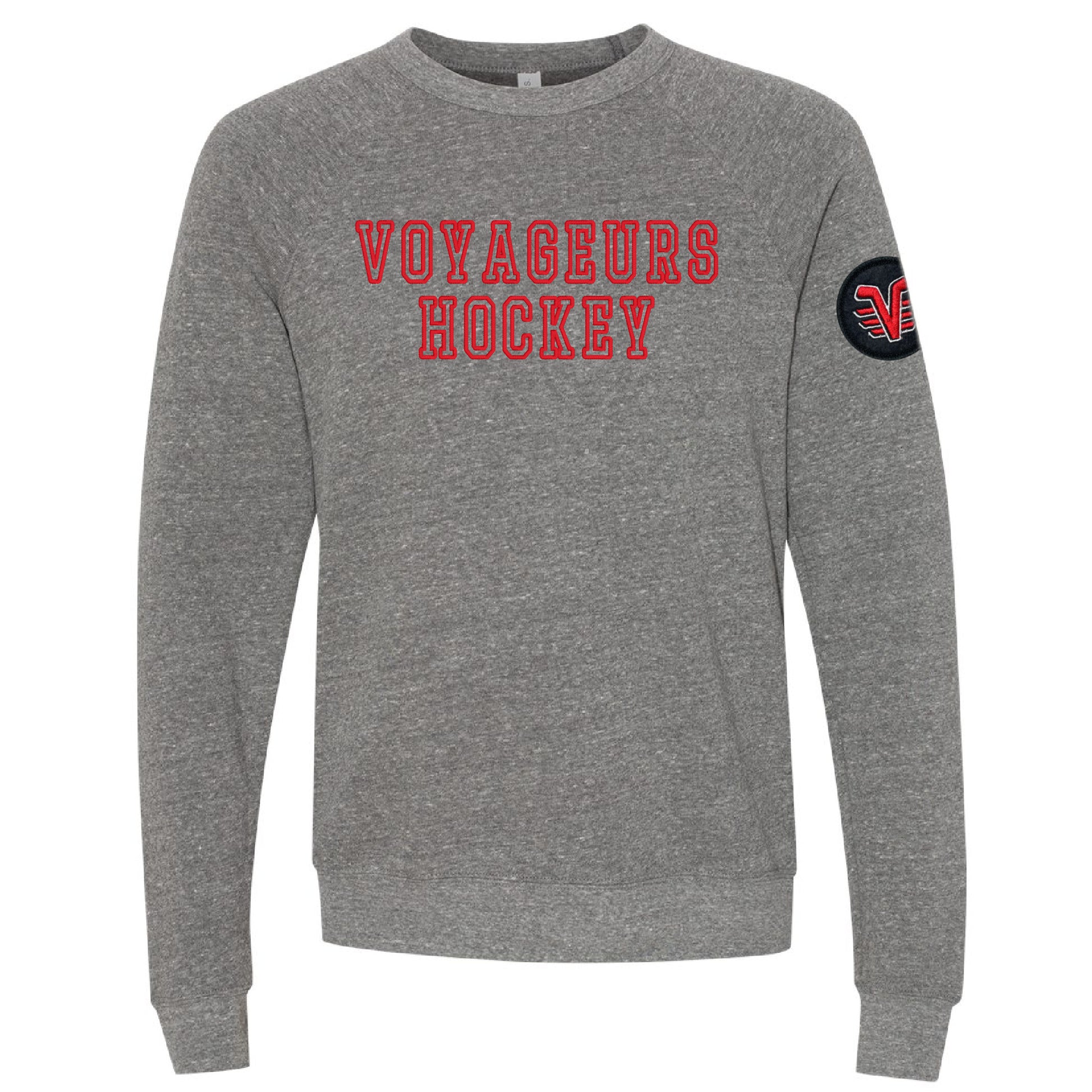 Voyageurs Hockey Varsity Block - Gray Crewneck with Logo Arm Patch